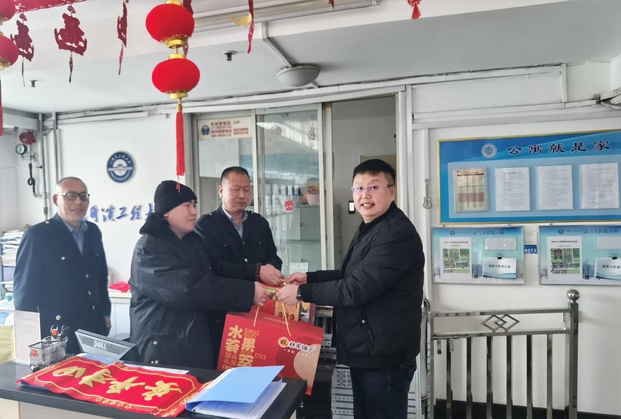 杨溪淼向15公寓管理人员一年来辛勤付出表示感谢,并送上美好的新春祝福和慰问品,同时强调,农历春节的脚步越来越近,留校学生服务、管理压力越来越大,大家丝毫不能有麻痹怠慢思想。公寓管理人员表示,一定会坚守履行好工作岗位职责,确保学生公寓安全,感谢求是书院一直以来对他们工作的支持和生活的关心。