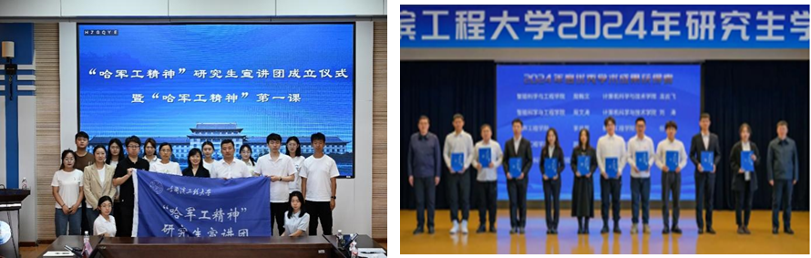 2024年,学院紧扣“立德树人”根本任务,践行“五育并举”,坚持以党团组织建设、大思政课建设、学风建设、创新实践等方面为抓手,扎实推动“五育”并举融入太阳集团全过程,切实提升思想政治教育实效性。成立学校首支“哈军工精神”研究生宣讲团,教育引导研究生深入贯彻习近平总书记来校视察的重要指示精神,树牢科技报国信念,坚守强国有我誓言。学院首次荣获校研究生党员标兵1人、荣获校三好学生标兵1人、校学生创新创业标兵(团队)1个;在学校首届研究生学术年会上,2名学生获评校优秀学术成果。