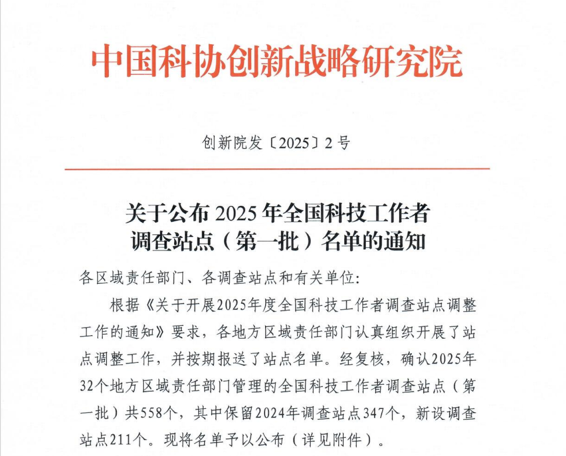 近日,中国科协公布了2025年全国科技工作者调查站点(第一批)名单,我校成功入选该名单,在黑龙江省科协指导下承担中国科协发布的各项工作任务。