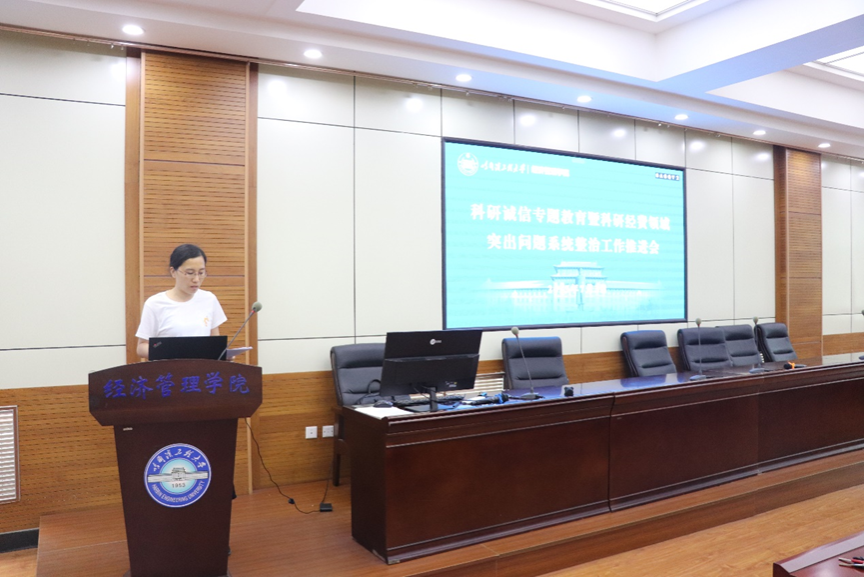 为深入推进中央八项规定精神学习教育、贯彻落实二十届中央纪委四次全会精神,加强科研诚信建设,规范科研经费管理,推动科研经费领域突出问题专项整治向纵深发展, 7月3日下午在31号楼202学术报告厅召开科研诚信专题教育暨科研经费领域突出问题系统整治工作推进会,学院院长陈恒、副院长胡玉真、全体教职工参加本次会议。