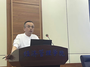 管理工程系主任朱建新老师代表研究生导师发言,结合人工智能发展历史,系统阐述了学院培养拔尖创新人才的战略理念,希望同学们筑牢学术根基、树立问题意识、涵养系统思维、砥砺家国情怀,将个人理想融入民族复兴伟业,成为正直、勇敢、坚强、奉献的新时代青年。