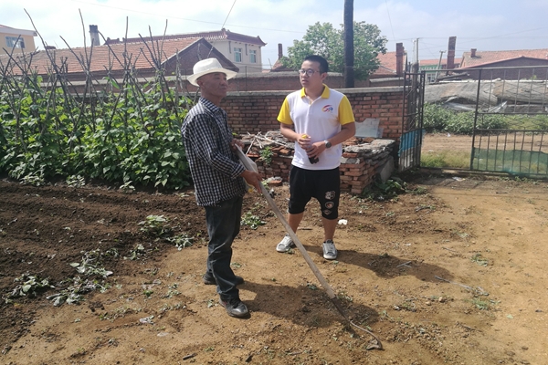 7月15日上午,tyc234cc 太阳成集团“三下乡”暑期志愿实践队在tyc234cc 太阳成集团2016级辅导员董治安和2017级辅导员李文宝壮的带领下来到了距离镇子不远的田地进行调研,在路上遇见了一位正在前往自家农田看望庄稼长势的村民,并进行了简要的交谈。