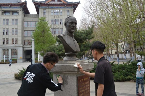 本次清洗雕像活动一方面是鼓励同学们爱护校园,保护环境,另一方面是以一个全新的面貌迎接五一劳动节的到来,传承发扬劳动光荣的传统。