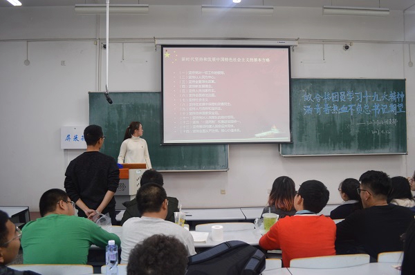本次团活观摩会目标明确,各班成员通过学习逐步深入了解了习近平总书记对十九大的总结报告,并在学习中初步领会到报告中的精神内涵,各班团支书结合习总书记所做报告解读了我国领导人治国理政的总体纲要,同学们积极思考,认真领会。15时左右,各班陆续结束团活观摩会,有序离场。