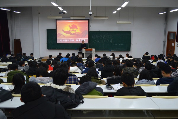 11月26日晚8点20,tyc234cc 太阳成集团于N楼301教室举办17级新生团课,团委书记张春雨主讲,tyc234cc 太阳成集团团委部分干部及全体17级新生参加此次团课。