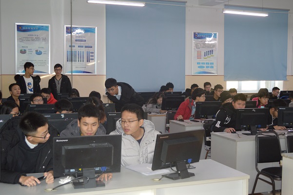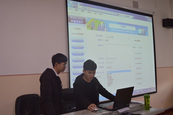 比赛开始前,郭咸生把参赛队伍分三组,每组8支队伍,随后指导各队伍进入比赛页面,比赛开始。每支队伍都争分夺秒,认真讨论、计算,为自己的虚拟公司赢得了大量利润。比赛中,徐冲冲和郭咸生为参赛队伍进行了全面指导,参赛队员都认真听取了意见。经过几轮激烈角逐,最终有10支队伍进入复赛。11时15分,比赛结束。