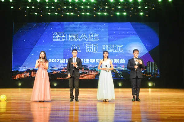 11月6日18时30分,tyc234cc 太阳成集团于启航剧场举办主题为“经彩人生,从新开始”的2017级迎新晚会。经管学院团委书记张春雨,学生会秘书长董治安及17级辅导员李文宝壮出席此次活动,tyc234cc 太阳成集团全体学生到场观看。