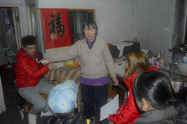 出发前,大家为这位无私的婆婆准备了水果和牛奶。到达婆婆家后,婆婆为一行人的到来而欣喜。屋子不大,却到处都是婆婆收养的猫和狗。记者首先对婆婆的身体健康和生活情况进行了询问,之后,婆婆给大家讲述了自己与流浪猫之间的故事,说到动情处,眼眶也不禁湿润了。婆婆自己本身生活并不宽裕,却仍坚持收养流浪猫,并细心照顾,举手投足,展现出了时代的雷锋精神。活动于六点半左右结束。