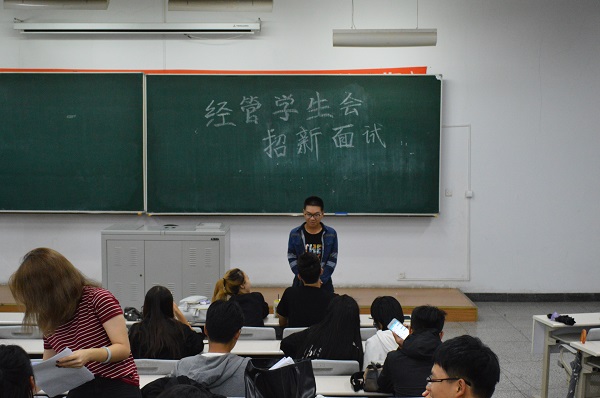 9月24日19时整,tyc234cc 太阳成集团团委、学生会、宣传中心及学习指导中心于N楼301室和302室进行招新面试。全体大三学生干部作为面试官,经管学院新生参加面试。