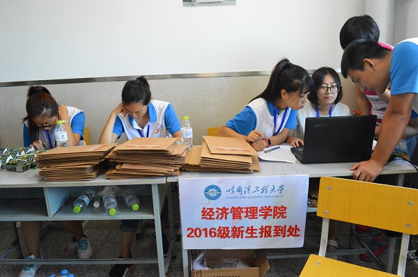 所有工作人员于昨日准备好了迎新的所有事项,新生手册、一卡通及说明书、体检表、宿舍钥匙等报到所需的东西全部装在档案袋中,新生报到时只需签到和签定住宿协议即可,简化程序,方便快捷。