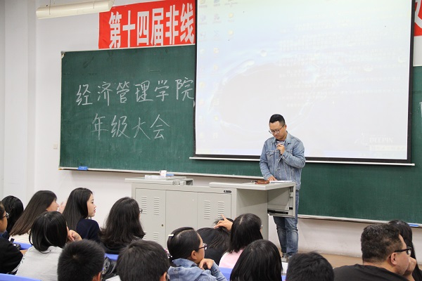 大会上董治安着重强调了学习的重要性,教导同学们“即使进入大学学习仍然是学生的首要工作”,表达了对同学们认真努力学习的殷切期望。由于是经管学院首次大类招生,在学生选课和学分已经四六级等方面做集体全面介绍,解答同学们的疑惑。并针对本学期的总体安排做出规划,通知早操,晚自习以及四级模拟等具体问题。最后董治安针对常见纪律问题提出几点要求,告诫新生要严格遵守校规校纪。