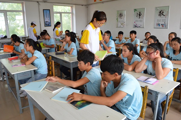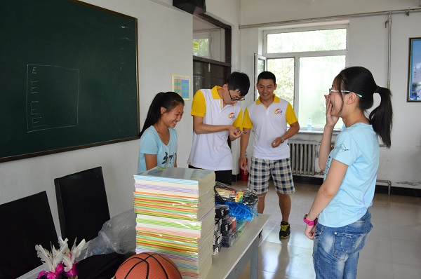 7月7日14时,tyc234cc 太阳成集团 “三下乡”暑期社会实践队在团委书记董治安的带领下,与青冈县兴华中学初三班级开展趣味活动。