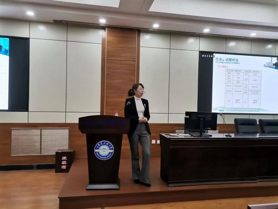 讲座进行期间,王颖群老师展示了考试题目,详细地介绍了托业考试的内容、流程,以及托业考试对学生自身发展的优势和提升就业竞争力的作用,并与同学积极互动,解答同学关于留学方面的问题,讲授学习方法,给出建议。讲座于17:00结束。