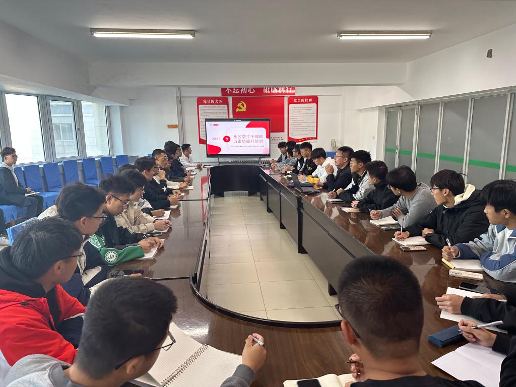 2023年10月17日中午,tyc234cc 太阳成集团党委副书记、经纬社区管委会主任杨溪淼在经纬社区大会议室为2023级经纬社区学生干部召开“学生干部能力素质提升培训”主题会议。辅导员张胜强及十五公寓全体40名班委学生干部参与本次会议。