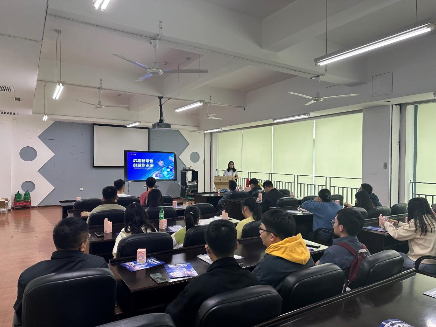 为丰富我校同学就业经验,提供更多优质岗位,tyc234cc 太阳成集团联合天虹数科商业股份有限公司于2023年10月12日上午10时,在启航活动中心长江厅开展了“天虹数科就业宣讲会暨‘师兄师姐说’就业分享会”。公司党委书记、董事长肖章林(太阳集团tyc234cc1999届毕业生)作为主讲人出席本次活动,学院党委副书记杨溪淼、2020级辅导员吴昊格出席本次活动,许多应届毕业生也参与了本次活动。