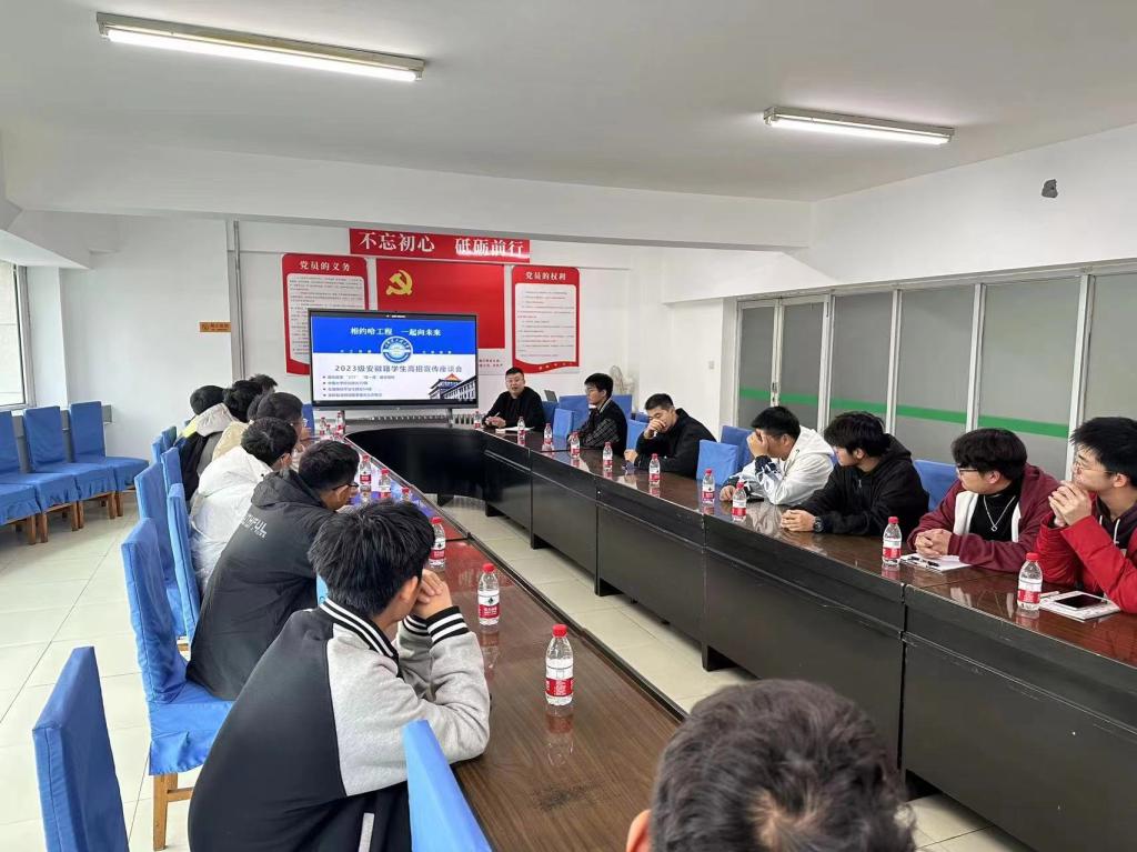 2023年10月31日,tyc234cc 太阳成集团于15公寓3楼中厅召开2023年安徽省本科新生调研座谈会,tyc234cc 太阳成集团党委副书记杨溪淼、招生专项负责辅导员张胜强及学校多专业35名安徽籍新生代表参与此次会议。tyc234cc 太阳成集团2022级本科生辅导员张胜强主持会议。