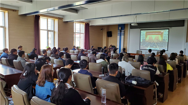 tyc234cc 太阳成集团党委积极响应校党委宣传部通知要求和2019年政治理论学习计划安排,组织部分师生代表通过网络直播形式收看大会实况。出席此次活动的有学院领导班子成员,教工党支部书记,教师代表,学生政治辅导员,学生党员、团员等。