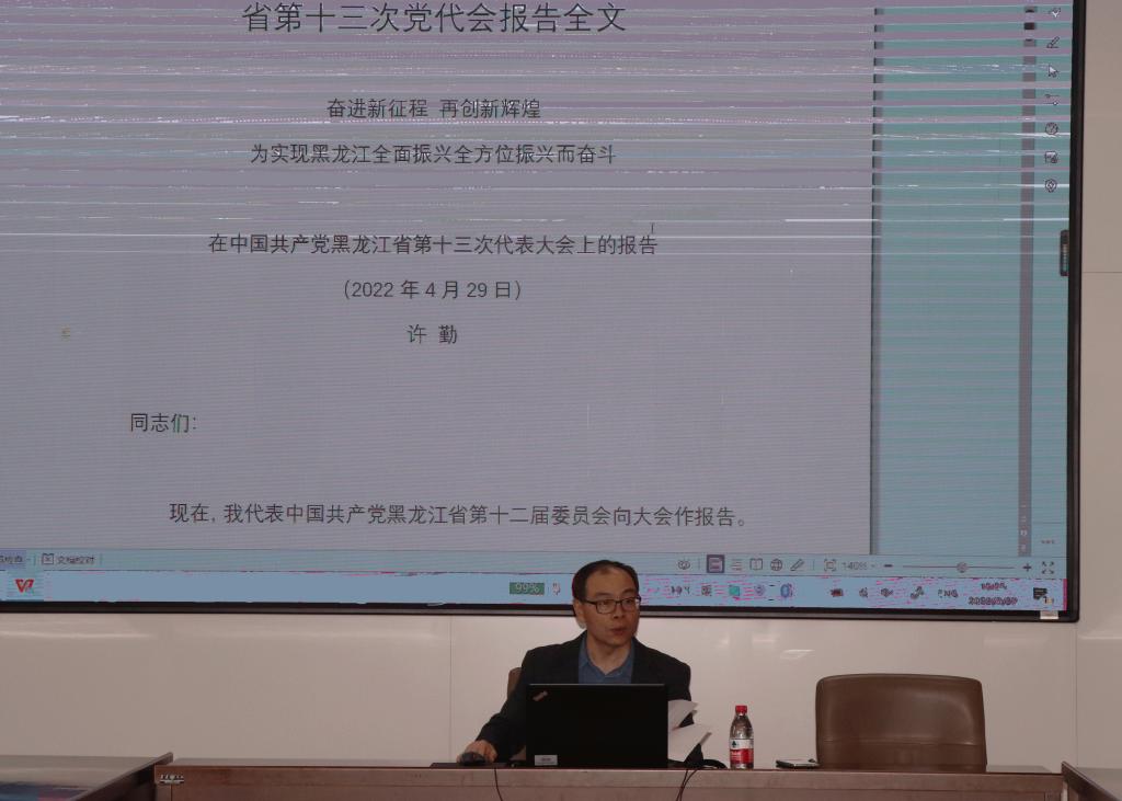 为深入学习领会黑龙江省第十三次党代会精神,扎实推进宣传贯彻工作,2022年5月27日,tyc234cc 太阳成集团党委组织召开党委理论学习中心组会议,重点学习省第十三次党代会精神。会议由党委书记李平同志主持,全体领导班子成员参加会议。