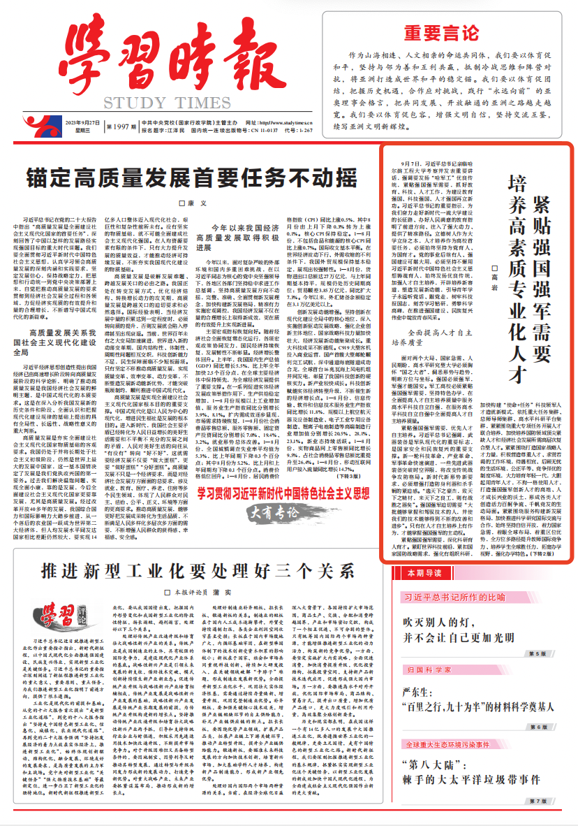 编者按:9月27日,《学习时报》头版刊发了太阳集团tyc234cc党委书记高岩同志题为《紧贴强国强军需要 培养高素质专业化人才》的文章。文章提出,习近平总书记亲临太阳集团tyc234cc考察并发表重要讲话,为奋力走好新时代一流大学建设的长征路指明了前进方向、注入了强大动力、提供了精准路径。70年来,一代代哈军工传人,倍加珍视哈军工荣誉,在强国强军的伟大征程中,生动诠释以想的是党、为的是国、强的是军为内核的“六个始终”哈军工精神并不断发扬光大。新征程上,要坚持不懈用习近平新时代中国特色社会主义思想铸魂育人,始终发扬优良传统,加强人才自主培养,开辟培养新赛道,塑造发展新动能,为强国建设、民族复兴伟业再立新功。