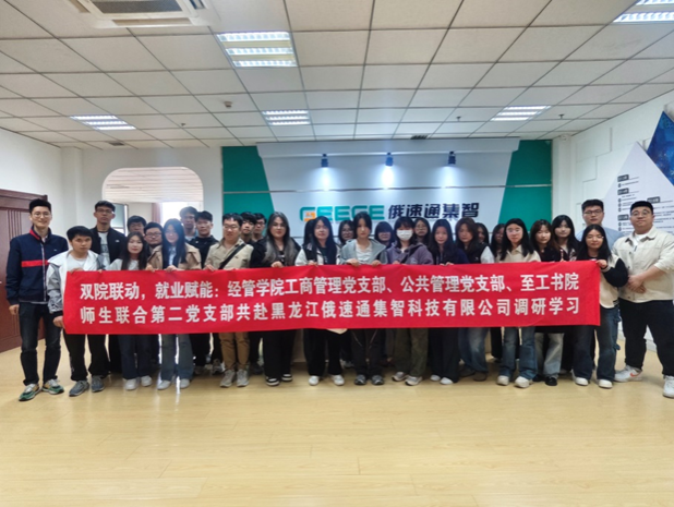 为深入推进党建引领下“学院+书院”协同育人实践,在学校前沿选修类课程《工业领域低碳管理》支持下,工商管理党支部、公共管理党支部与至工书院学生党支部共赴黑龙江俄速通集智科技有限公司开展实习实践活动,工商管理党支部书记刘天森、公共管理系青年教师高羽作为课程主讲教师带队前往,30余位大二学年同学参加学习交流。