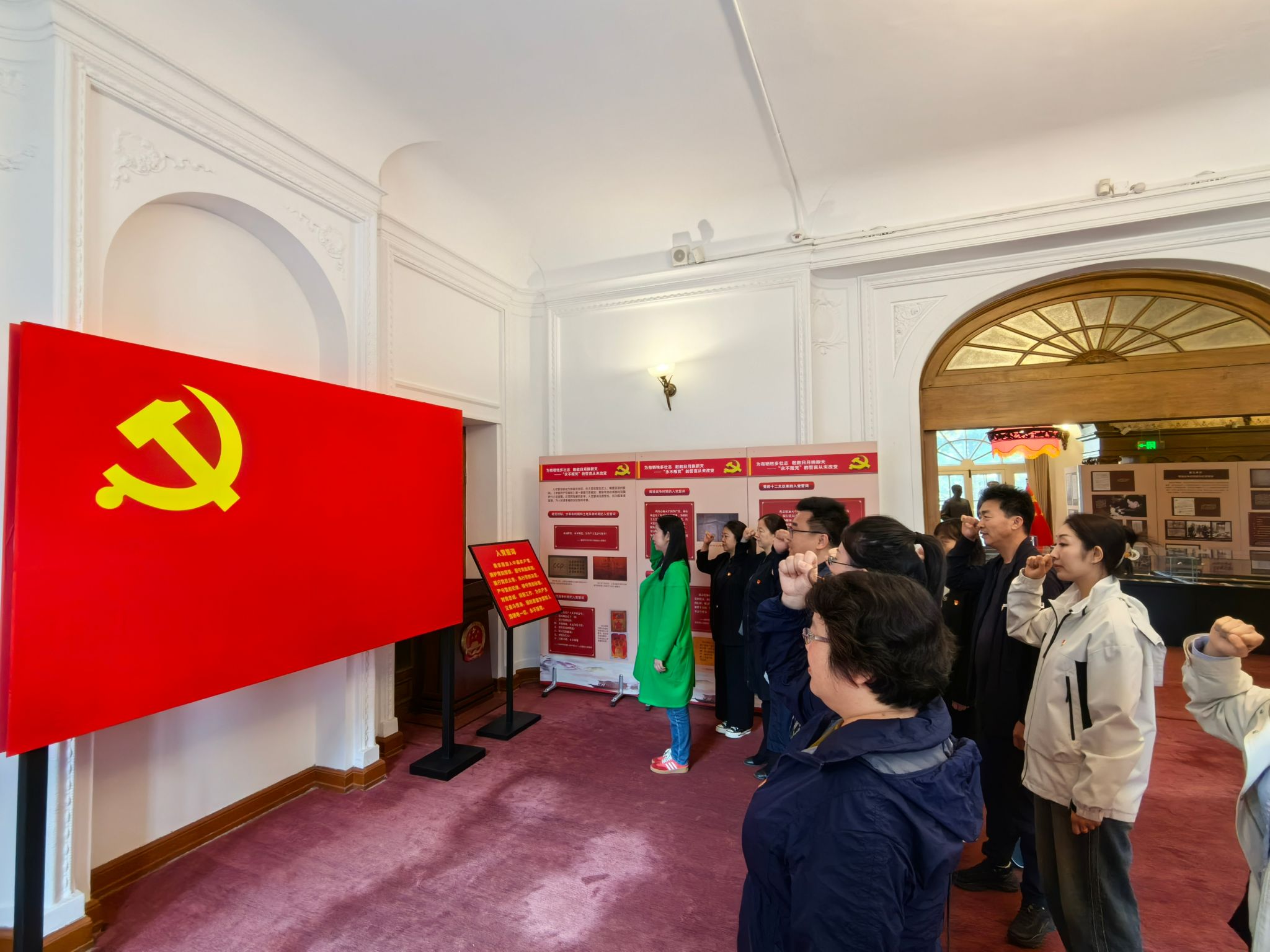 最后在党支部书记带领下,全体党员在纪念馆内党旗下重温入党誓词,这既是对初心使命的回望,也是对历史和先辈的告慰,更是对接续奋斗的宣示。